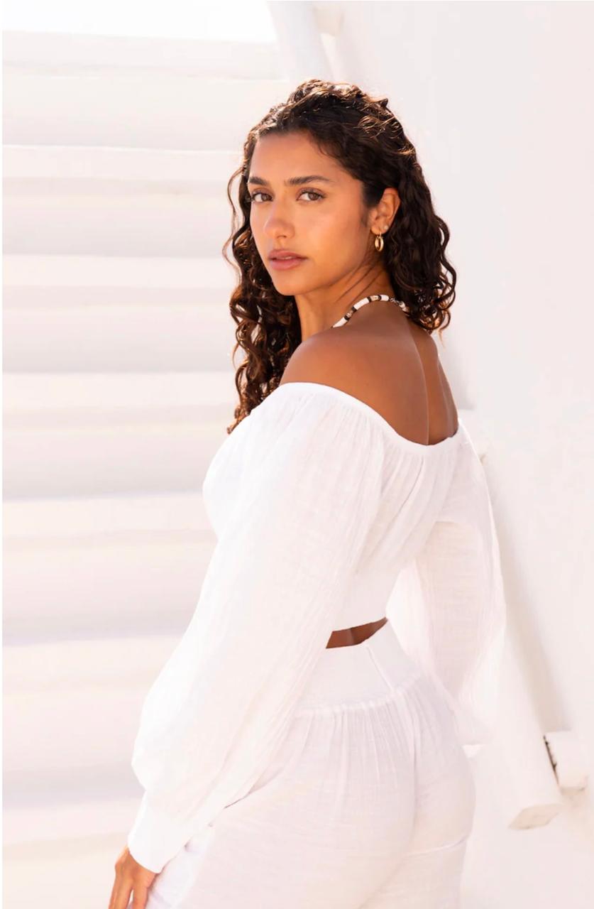 Our denim inspired resort pant! The Dasha Pant is made from a luxurious cotton fabric. They can be worn high on the waist or low on the hips. They feature an elastic back, button up front and slight flare opening. Pair with any of our tops and get some beachside drinks with friends! Styling Tip: Tassel at front can be removed for a more subtle look.